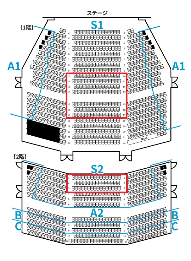 2階S2席の両端はA2席です。